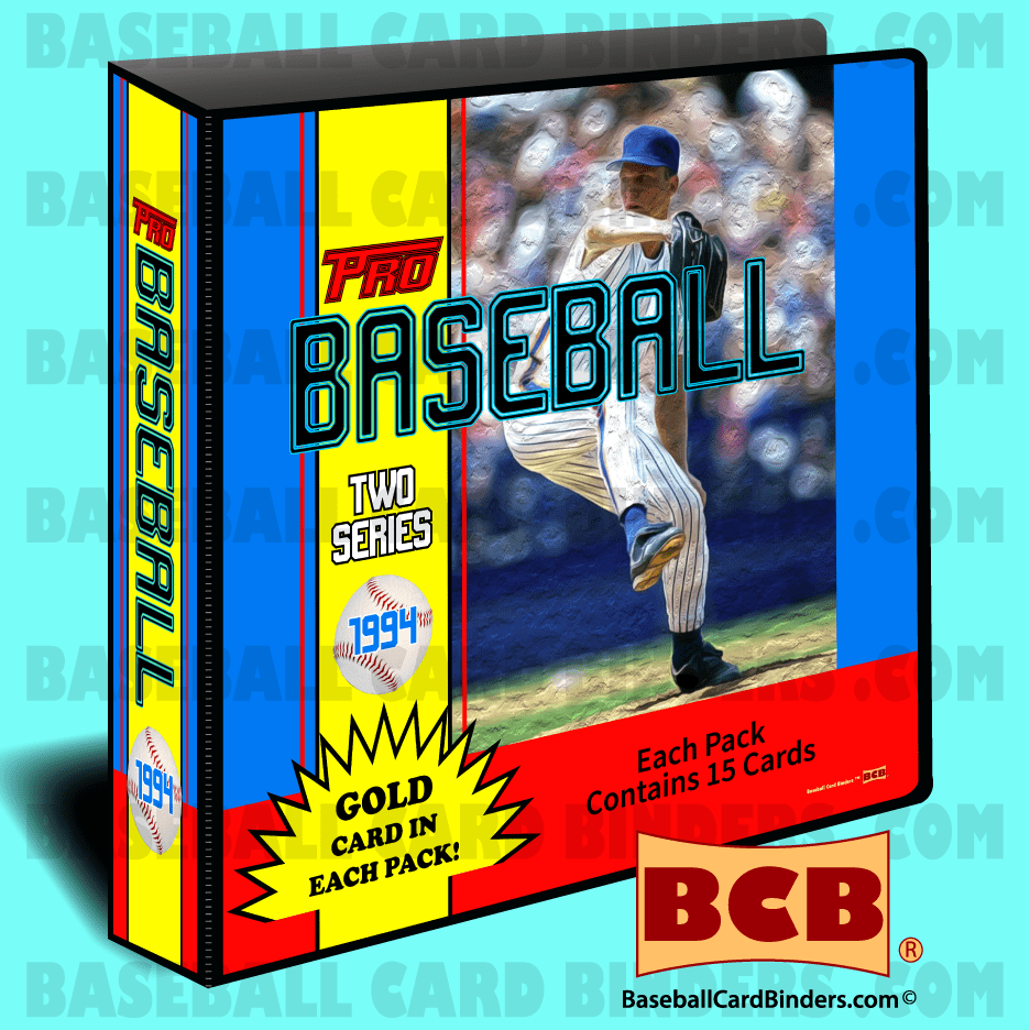 Our high quality 1994 Topps Style Baseball Card Album Binder features high-resolution graphics on both spine & front cover with clear durable plastic outer shell. Interior features Ergo-Open™ Slanted D-ring closures to securely house your card collection (sheets not included).